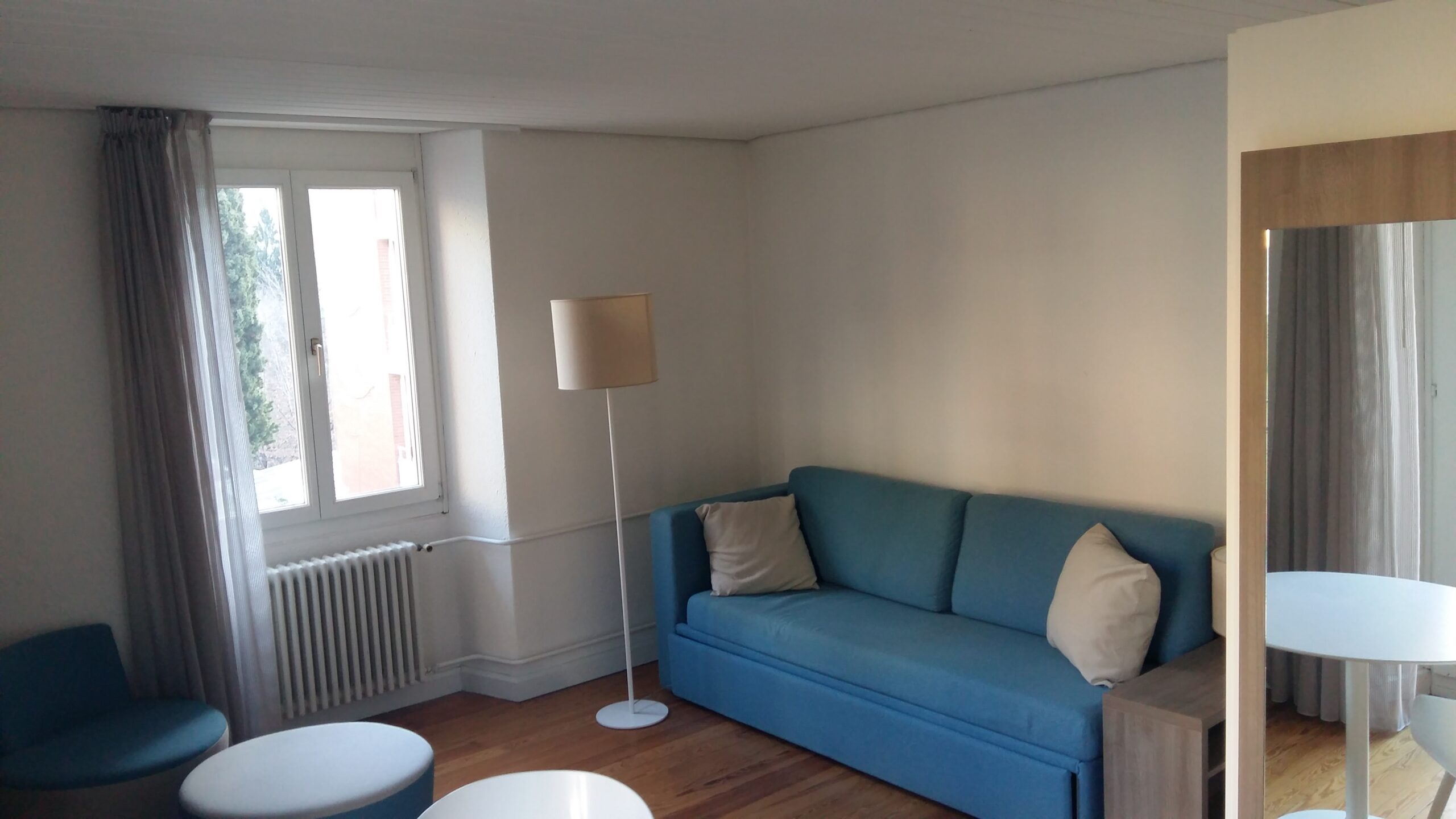 Monolocale arredato comodo al centro: divano letto, living, ampio armadio 3 ante, cucina, bagno con doccia.